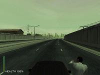 done earlier and better by Oni, a three-year old game. The driving + guns thing was