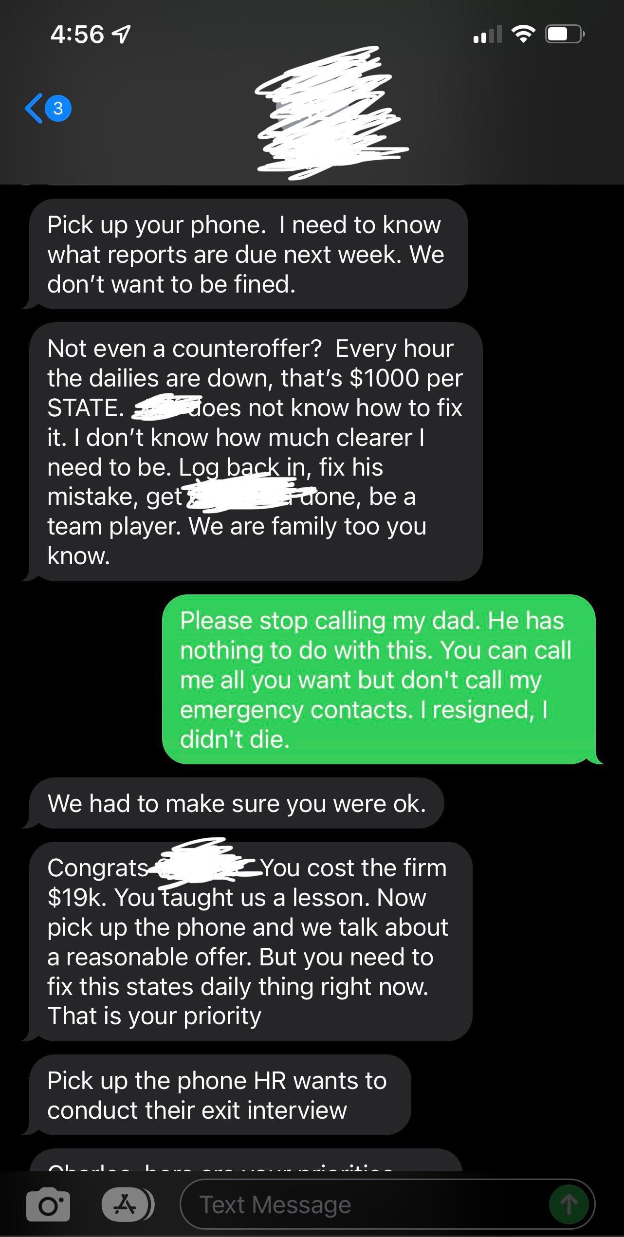 I drafted my resignation letter after the call, set it to delay delivery on Monday at 8am, and closed up shop.