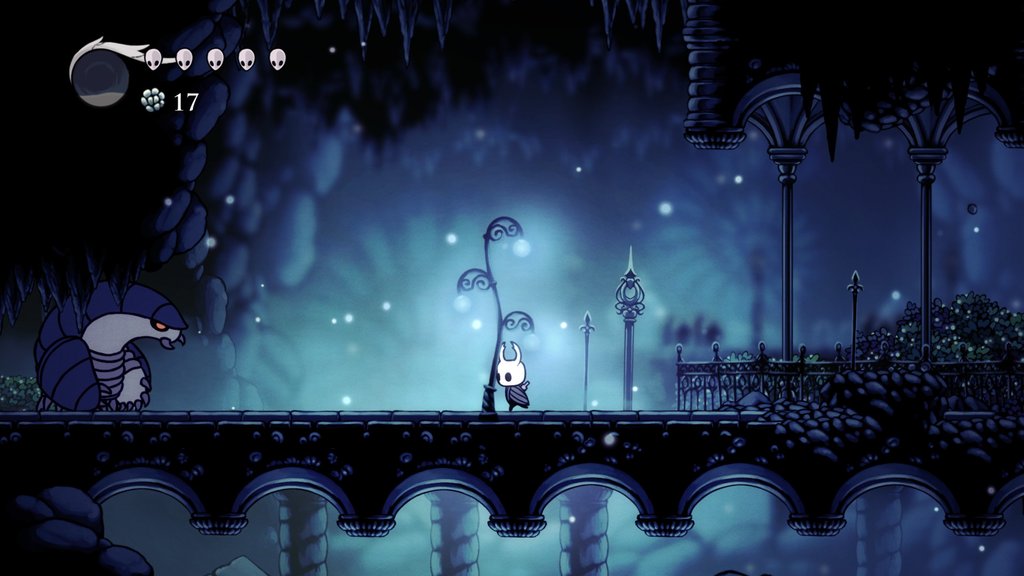 In Hollow Knight, I quickly got to a screen where there was a crying person. We have "jump" and "attack" as our verbs. The crying person was way up on the screen, so I can't interact and even if I could, I only know those two buttons.