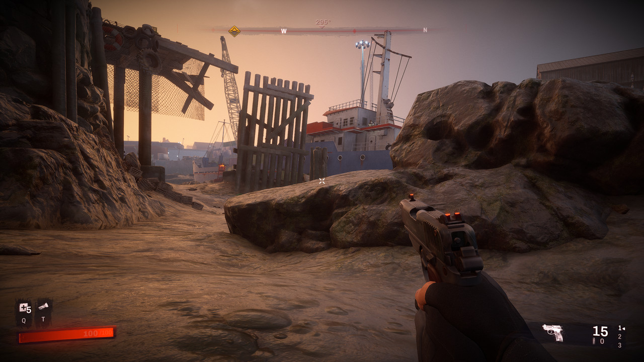 The vampires killed all the people on the ferry except for you. FERRY NICE. So you run around and collect health and guns and ammo. It was lost on me that there was a "melee attack" so I wasted 15 minutes running around the boat trying to figure out how to get off it, when really, the answer was to smash the glass. I don't know if that one was on me or not, not knowing about the melee key, which is F.